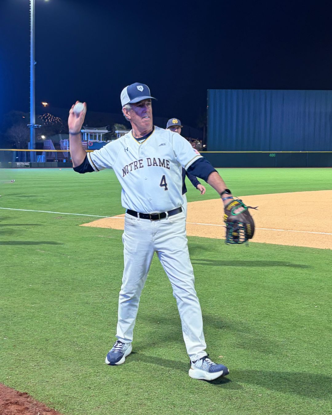 Notre Dame alum and Live Like Lou Trustee John Roselle threw a first pitch in honor of his late wife, Laurie, who was diagnosed with ALS in 2021 and passed away in 2024. Together, they established the Roselle Fund for ALS Research with Live Like Lou. Through the annual All in for ALS Research Trivia Night, more than $400,000 has been endowed to support ALS research in Indiana.